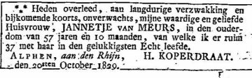 | Overleden: | 30 oktober 1829 (Alphen) |