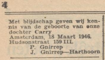 Carry Gnirrep 18-3-1946 Gepubliceerd op 3 januari 2026 in Karina GnirrepVolledige resolutie (354 × 204) ← Vorige