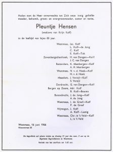 | 82 jaar: | overlijden Pleuntje |