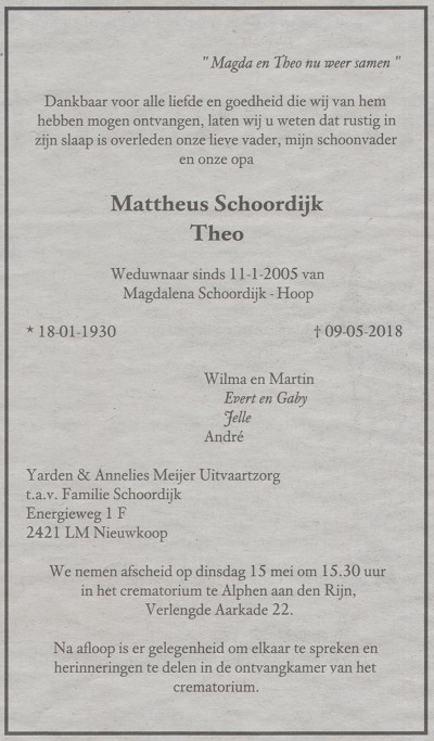 overlijdensadvertentie Mattheus Schoordijk Gepubliceerd op 17 april 2020 in Theo SchoordijkVolledige resolutie (400 × 683)