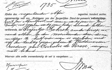 11. Voor de officiële overschrijving van het gezin was op 24 augustus 1868 te Velsen al Bastiaan de Brave geboren; vader heette kanaalwerker van beroep; Bastiaan overleed op 1 september 1870 te Velsen.